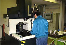 NC加工機などで切削加工だけでは実現できない細密な加工には、グラファイト電極による放電加工が欠かせません。弊社ではグラファイト専用の加工機を導入。美しい仕上がりのグラファイト電極により、よりいっそう滑らかで美しい仕上がりの金型を製造しています。