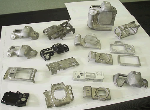 弊社では、カメラなどの細密な製品から車体部品などの大型の製品まで、また、マグネシウム、プラスチックなど多様な素材に対応できるさまざまな金型の製造ノウハウを有しています。
